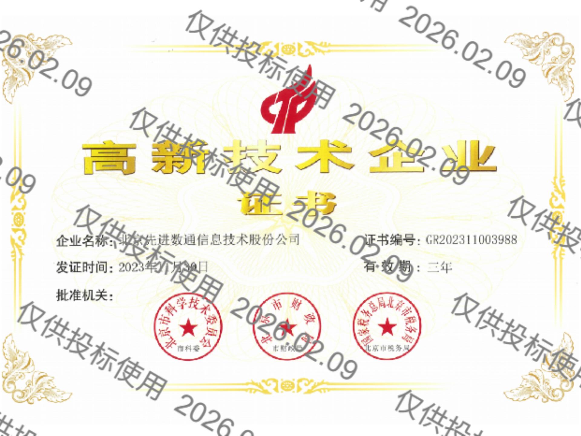• 高新技术企业证书